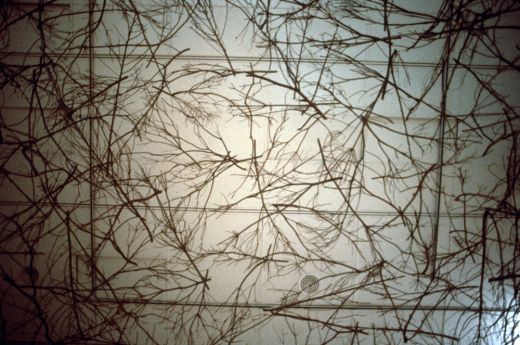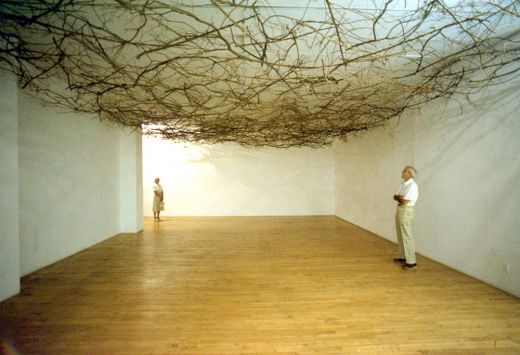 Blanket of Branches. 1986. Miscellaneous tree branches hung as a canopy 18" from the ceiling at the Contemporary Arts Forum, Santa Barbara, CA. 40' x 50'.