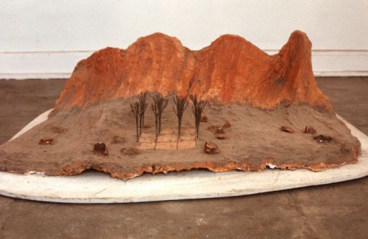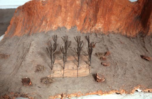Desert (macquette). 1979. "Desert (macquette)" is a model for a piece called "Desert Grid". It is made of wire rope, wire, plaster, and paint, and is approximately 12" high.