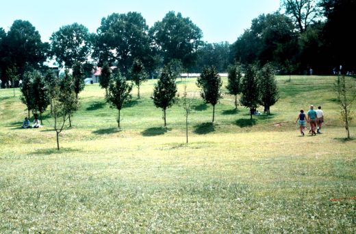 Necklace of Trees. 1985 - 2008. Bradford pear trees in a circle surrounded by Gingkos and Japanese maples. 12' x 70' diameter. Piedmont Park, Atlanta, GA.