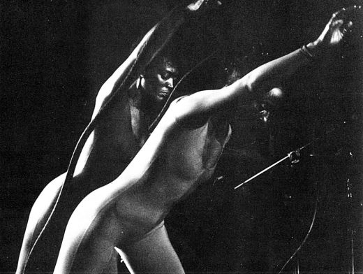 Stilwende. 1981. Performance where Michelle and I became wire rope. We began as club patrons, stripped, and then became the metal rope. Performed at Stilwende in NYC.